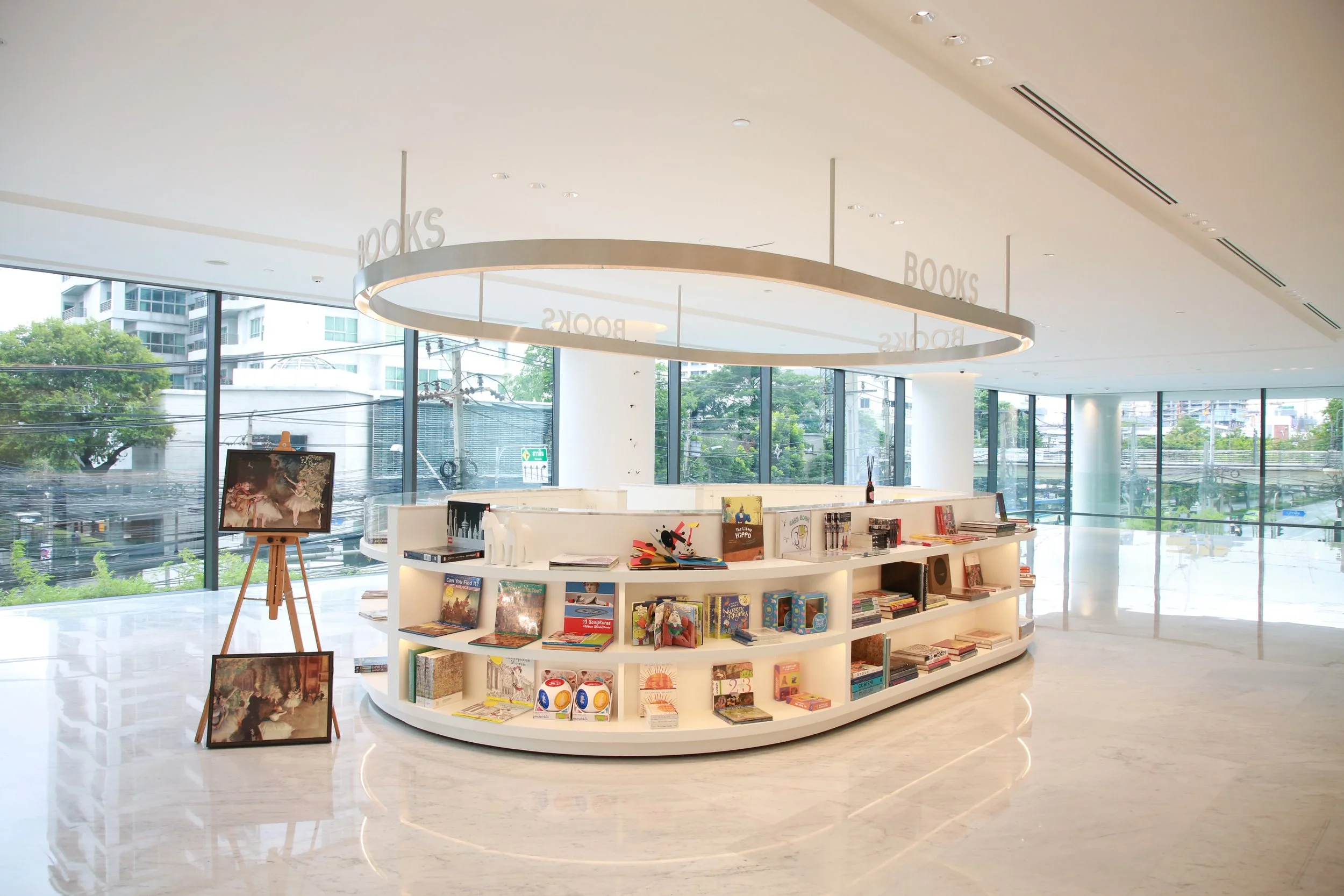 Next to the piano museum is an area for reading and browsing. A book specialist was engaged to fill the space with a vast selection of books from the renowned independent bookstore in New York, The Strand Bookstore.